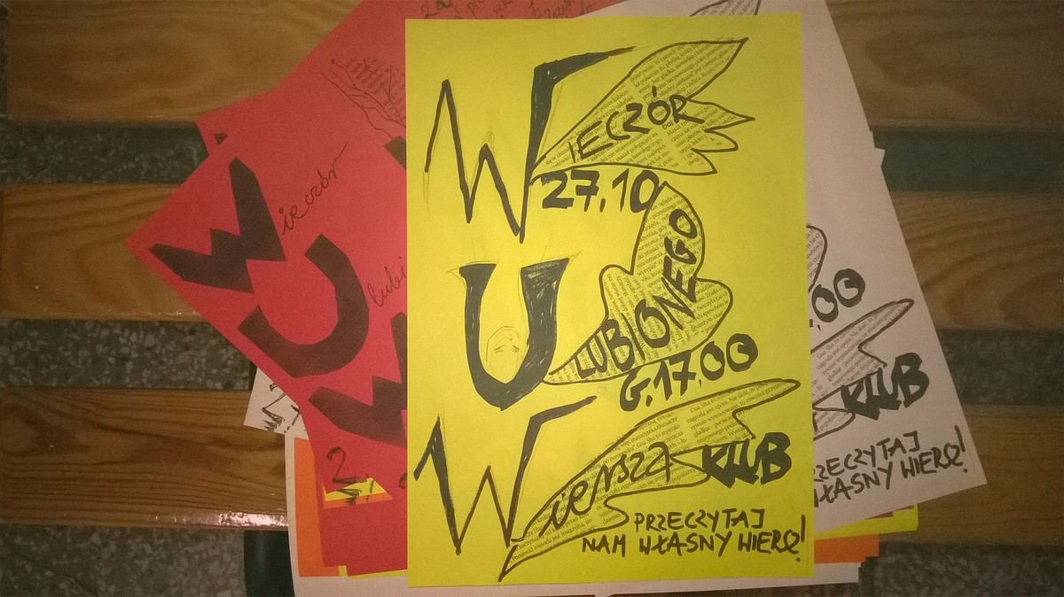 W czwartek 27.10. w Klubie szkolnym o godz. 17:00 odbędzie się Wieczór Ulubionego Wiersza (czyli WUW)