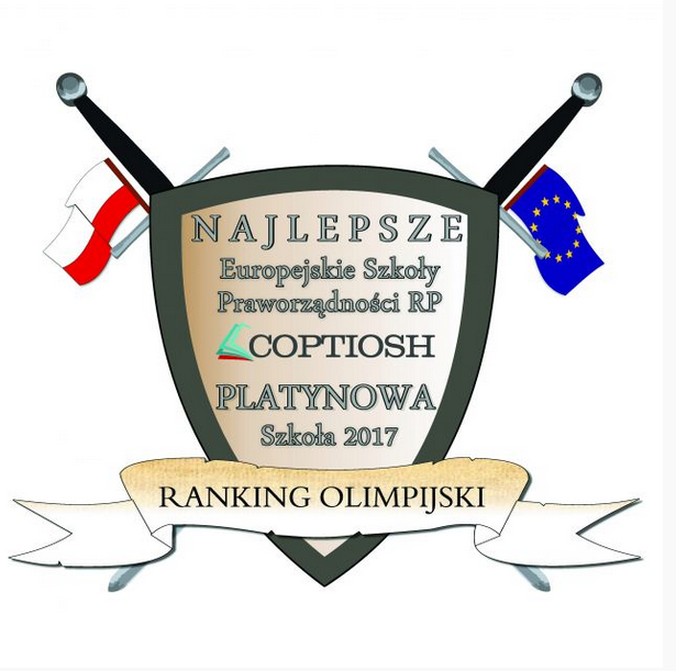 10 marca 2018 roku podczas etapu centralnego Olimpiady Wiedzy o Unii Europejskiej nasza szkoła została uhonorowana tytułem Platynowej Europejskiej Szkoły Praworządności RP oraz zajęła PIERWSZE MIEJSCE w rankingu COPTIOSH ( dla niewtajemniczonych jest to ranking ponad 6000 szkół olimpijskich z całej Polski ogłaszany corocznie przez Centrum Organizacji Przedmiotowo – Tematyczno – Interdyscyplinarnych Olimpiad Społeczno – Historycznych w Białymstoku).