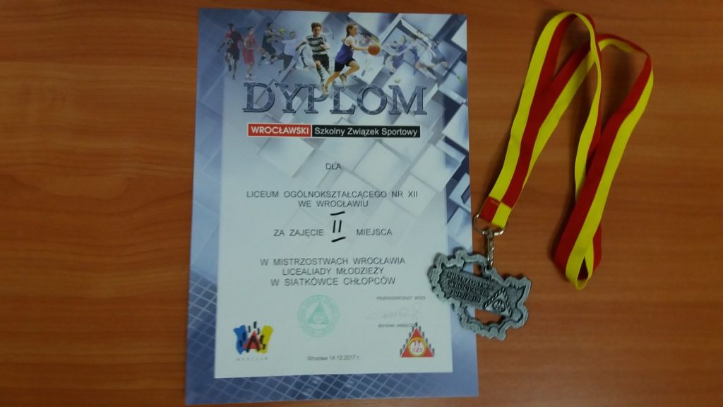 Podobnie jak dziewczęta Nasi uczniowie zajęli II miejsce w strefie zachód i zdobyli awans do następnej fazy rozgrywek. 13 grudnia w ZS Nr 5 odbył się turniej barażowy z udziałem LO IX i ZS 5 gdzie Nasi uczniowie wygrali oba spotkania i awansowali do finału Mistrzostw Wrocławia. Ów finał odbył się dzień później (14 grudnia) w hali Gwardii Wrocław. W półfinale chłopcy pokonali 2:0 zespół z LO III, natomiast w finale przegrali z reprezentacją SMS Junior (którą stanowi zespół klubowy Gwardii Wrocław). I tak po rozegraniu jedenastu spotkań reprezentacja LO XII zakończyła swoje zmagania na II miejscu zdobywając srebrne medale Mistrzostw Wrocławia. Warto tutaj zaznaczyć iż jest to najwyższy sukces Naszych siatkarzy w historii szkoły. Skład Naszej drużyny: Jakub Łocan (1b), Bartosz Piworowicz (1h), Filip Durlak (2d), Bernard Ożga (2e), Piotr Kędzierski (2f), Paweł Skrzypek (2f), Paweł Wesoły (3d), Wiktor Grudzień (3e), Adrian Braun – Gródecki, Piotr Mikosiak oraz Jakub Wąsiel (wszyscy z 3g).