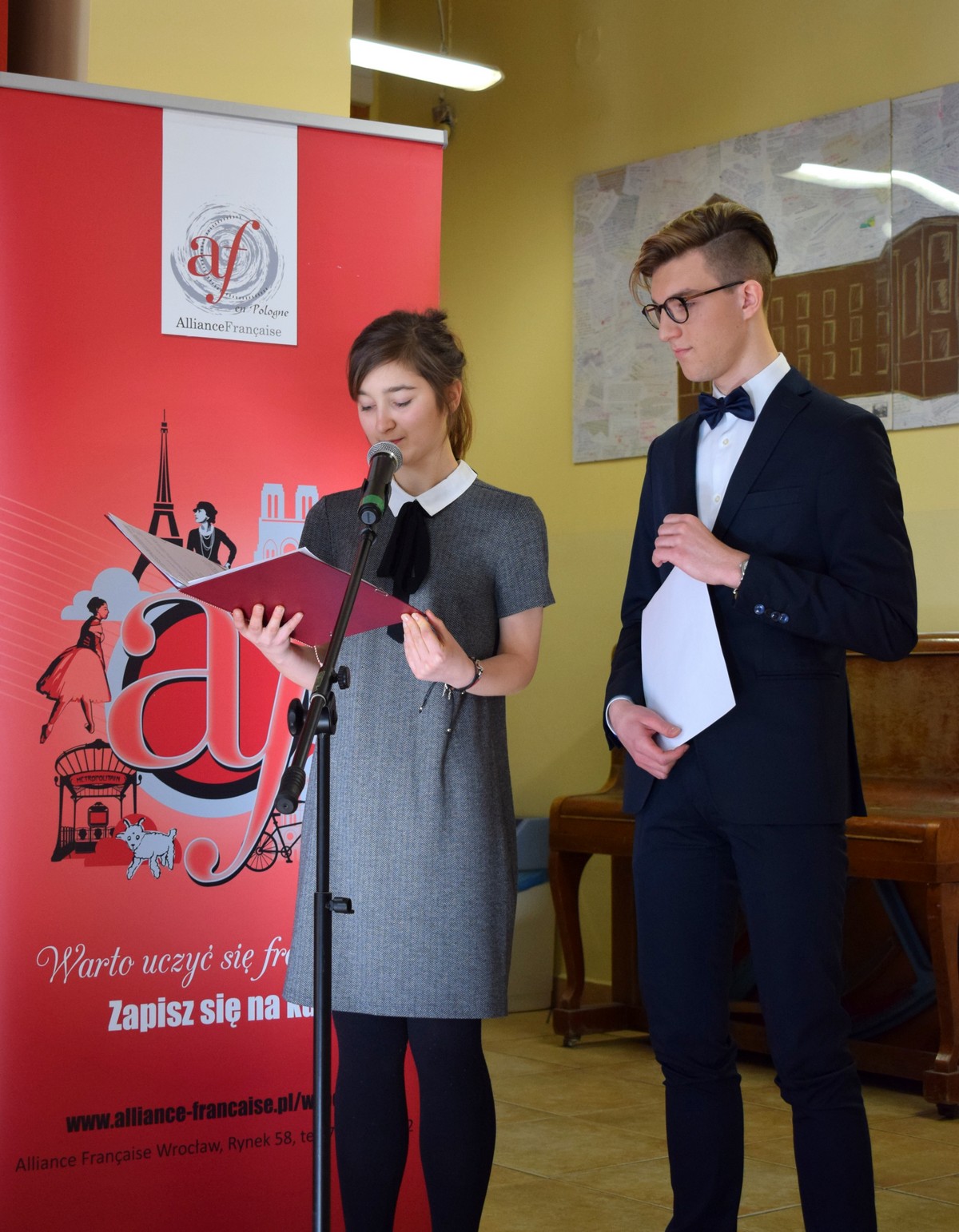 Fundatorem głównej nagrody w tegorocznej edycji konkursu (semestr kursu języka francuskiego) była Szkoła Języka Francuskiego Alliance Française we Wrocławiu, którą wręczyła Pani mgr Grażyna Sojka – Dyrektor Alliance Française we Wrocławiu.