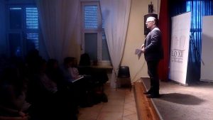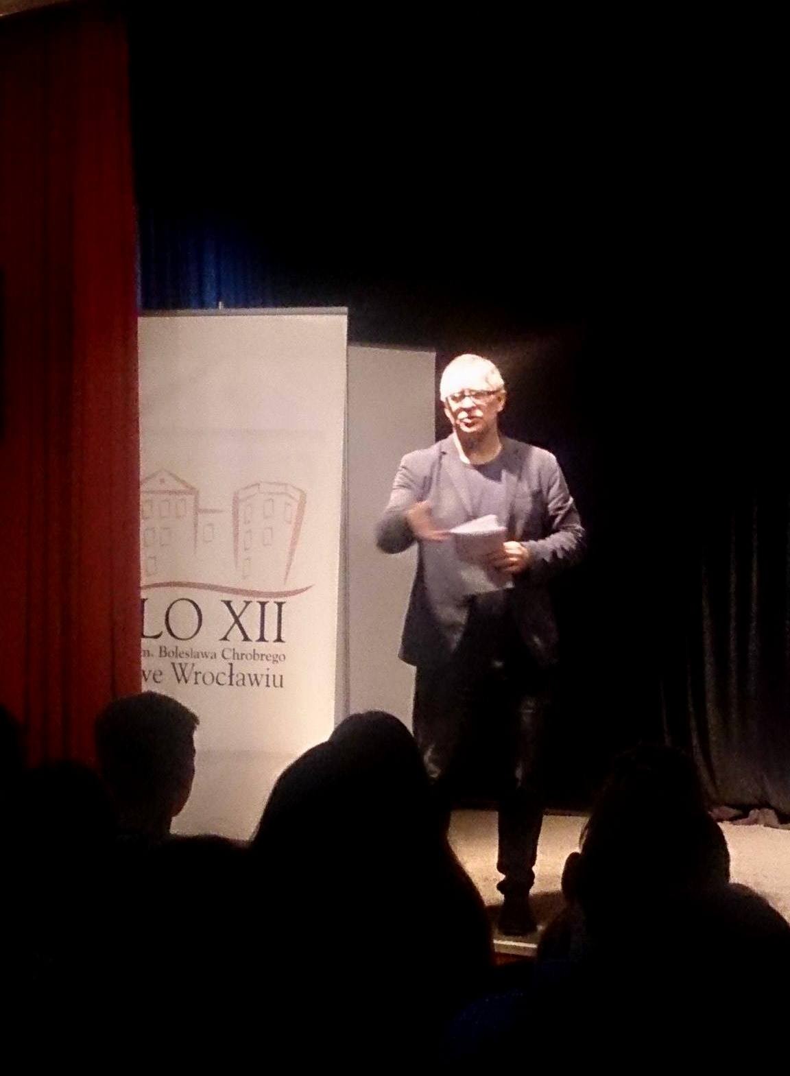 W poniedziałek, 5 grudnia b.r., pan dr hab. Dariusz Dybek z Uniwersytetu Wrocławskiego poprowadził zajęcia przygotowujące uczniów do udziału w Ogólnopolskim Konkursie na Felieton. Wzięło w nich udział ok. dziewięćdziesięciu uczniów z dolnośląskich gimnazjów i wrocławskich liceów.